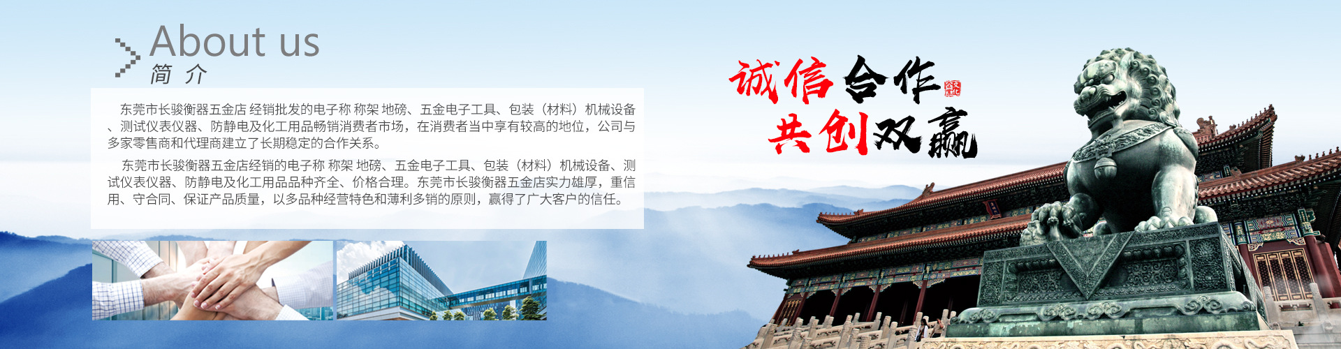 经销批发的电子称 称架 地磅、五金电子工具、包装(材料)机械设备、测试仪表仪器、防静电及化工用品畅销消费者市场,在消费者当中享有较高的地位,公司与多家零售商和代理商建立了长期稳定的合作关系。公司经销的电子称 称架 地磅、五金电子工具、包装(材料)机械设备、测试仪表仪器、防静电及化工用品品种齐全、价格合理。公司实力雄厚,重信用、守合同、保证产品质量,以多品种经营特色和薄利多销的原则,赢得了广大客户的信任。